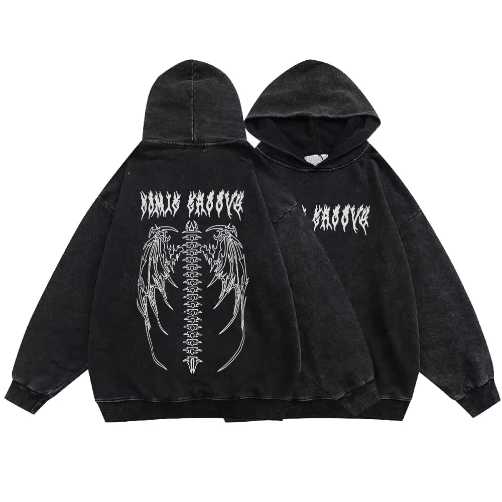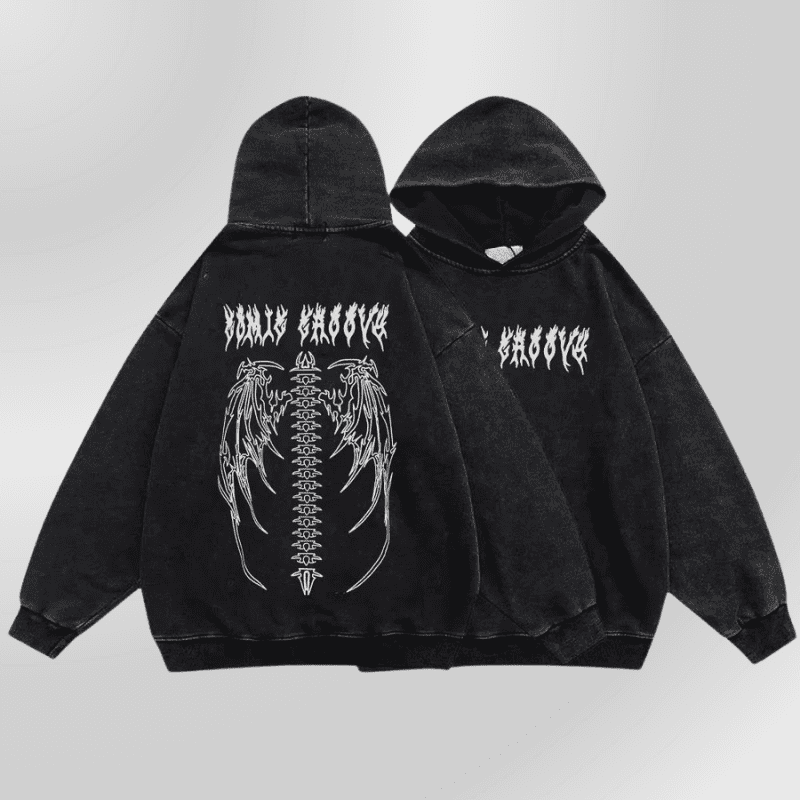 Alternative schwarze Grunge-Kapuzenpullover - Bones