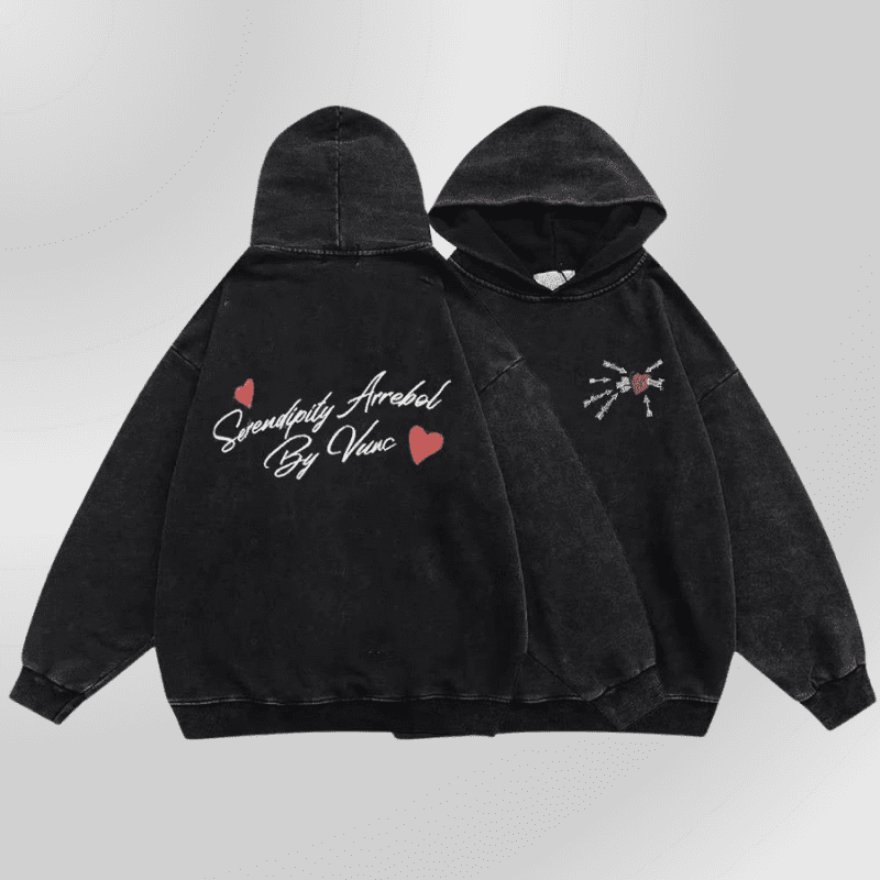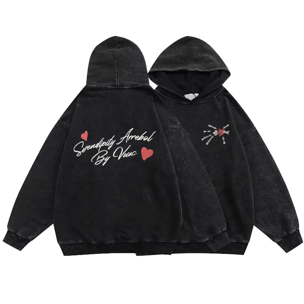 Schwarzes Grunge-Hoodie mit Kapuze - Heart
