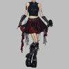 Asymmetrischer Punk-Rock-Rock mit bordeauxrotem Karo-Muster Optionen anzeigen