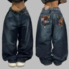 Baggy-Hose im Metal-Stil mit Nieten-Gürtel und Stickerei
