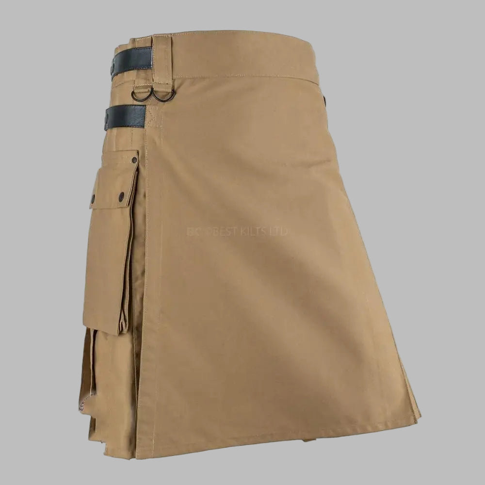 Beiger Steampunk-Kilt mit Lederriemen und Schnallen