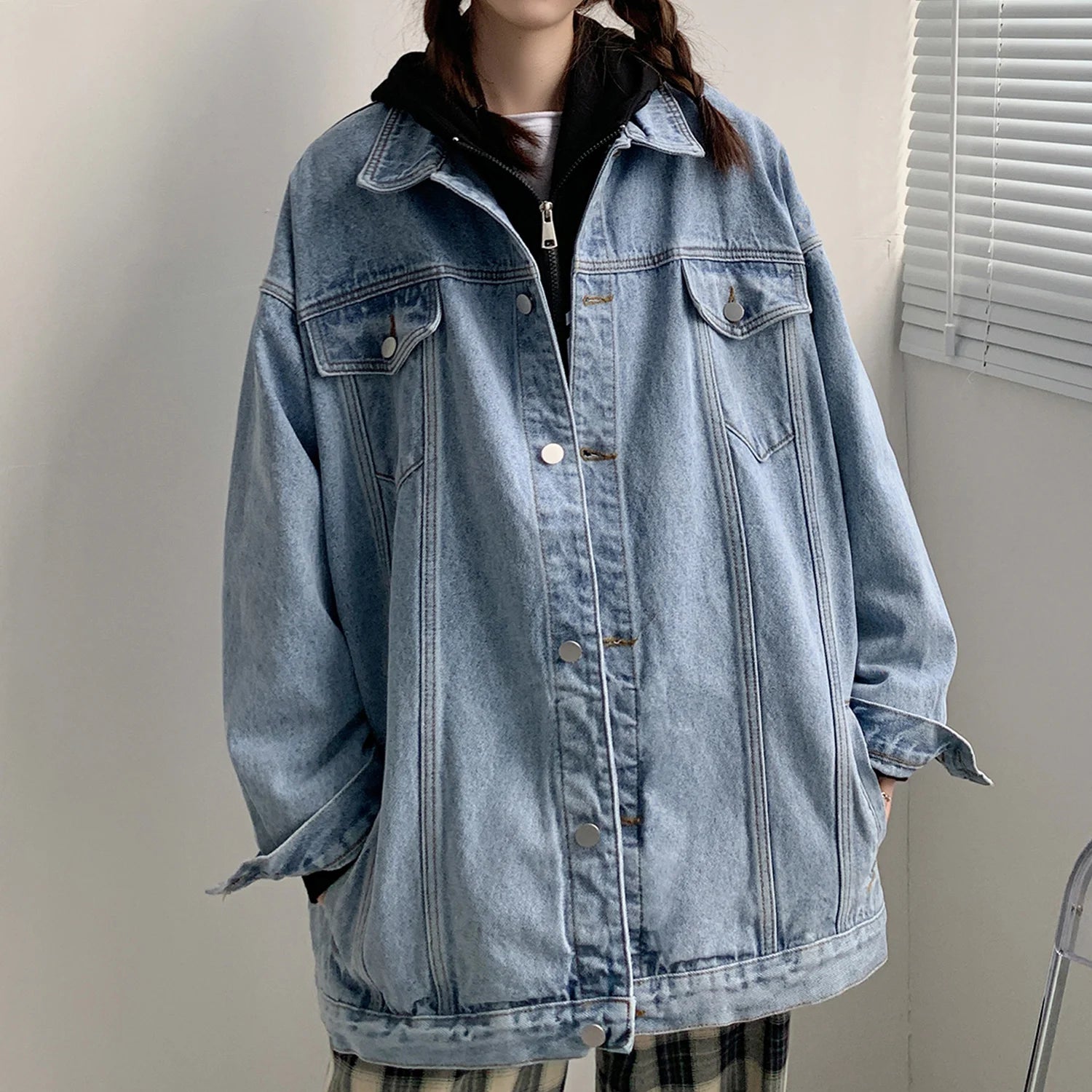 Blaue Oversize-Jeansjacke mit Taschen