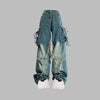 Blaue Punk-Jeans mit zerrissenen Cargo-Taschen