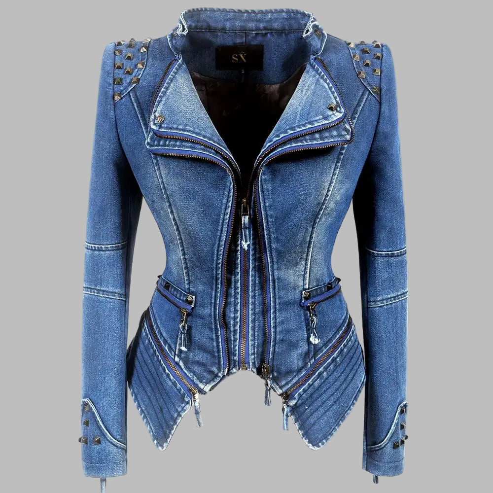 Blaue Punk-Rock-Jeansjacke mit Nieten