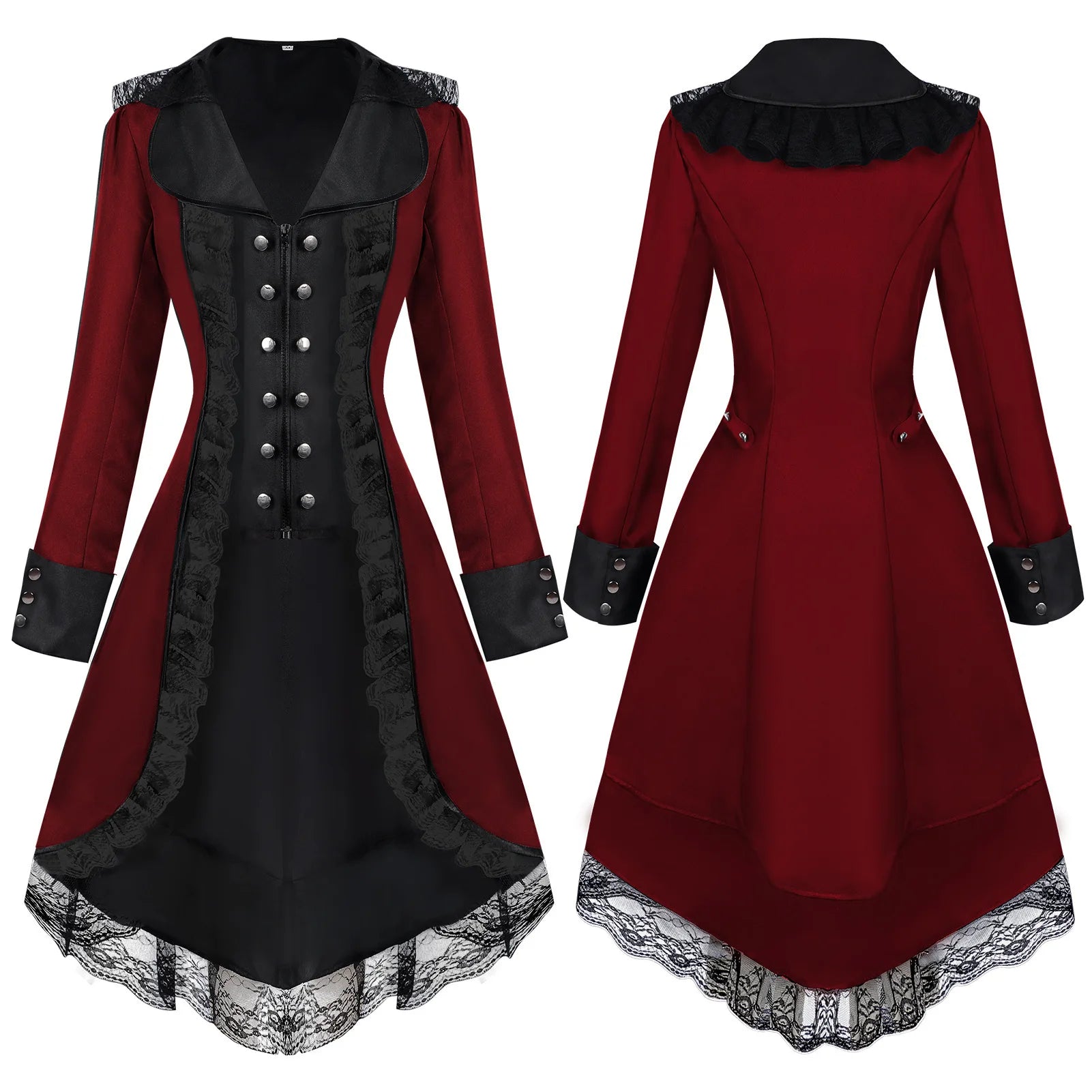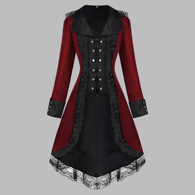 Bordeauxfarbenes Steampunk-Kleid mit schwarzem Korsett und Spitze