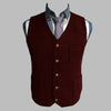 Bordeauxfarbene Rock-Weste mit tiefem V-Ausschnitt und braunen Knöpfen