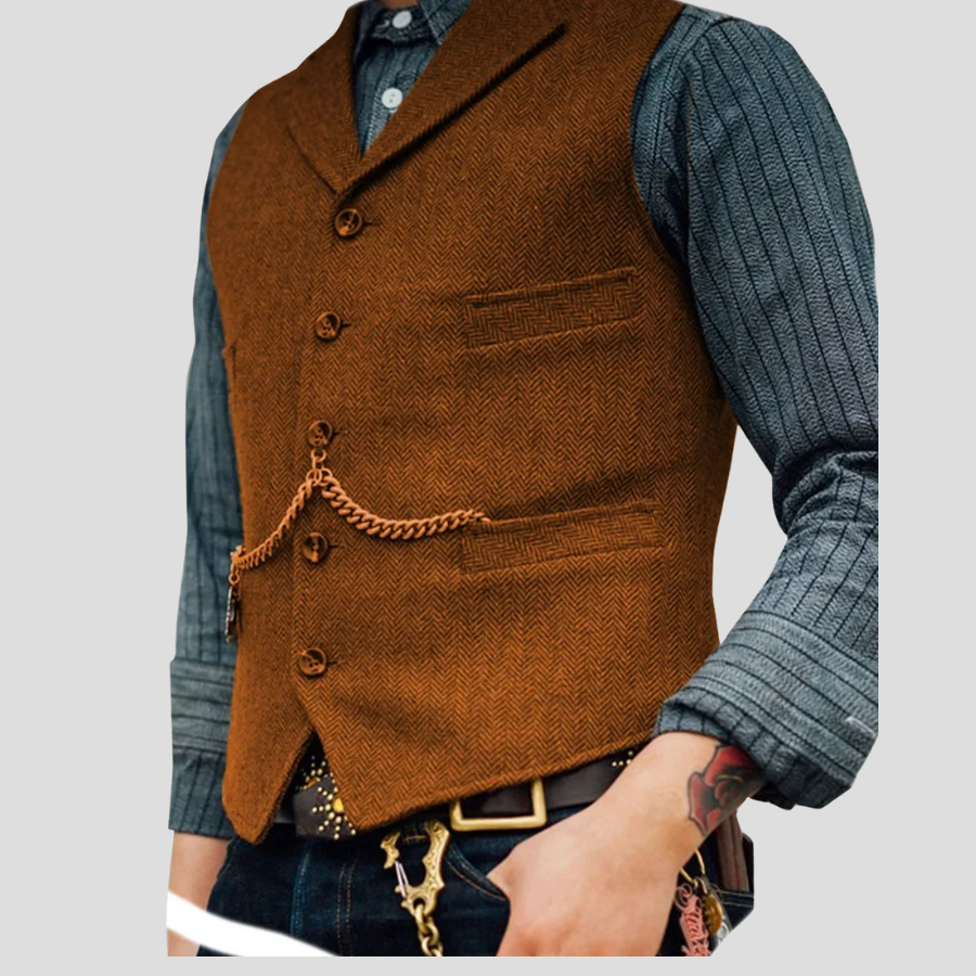 Braune Rock Weste mit Kette Vintage Fischgrät Finish Optionen anzeigen