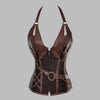 Brauner Steampunk-Korsett mit Ketten und Lederriemen