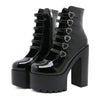 Damen Gothic Plateau Schuhe Schwarz Lackleder Metal