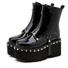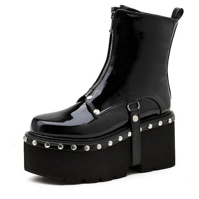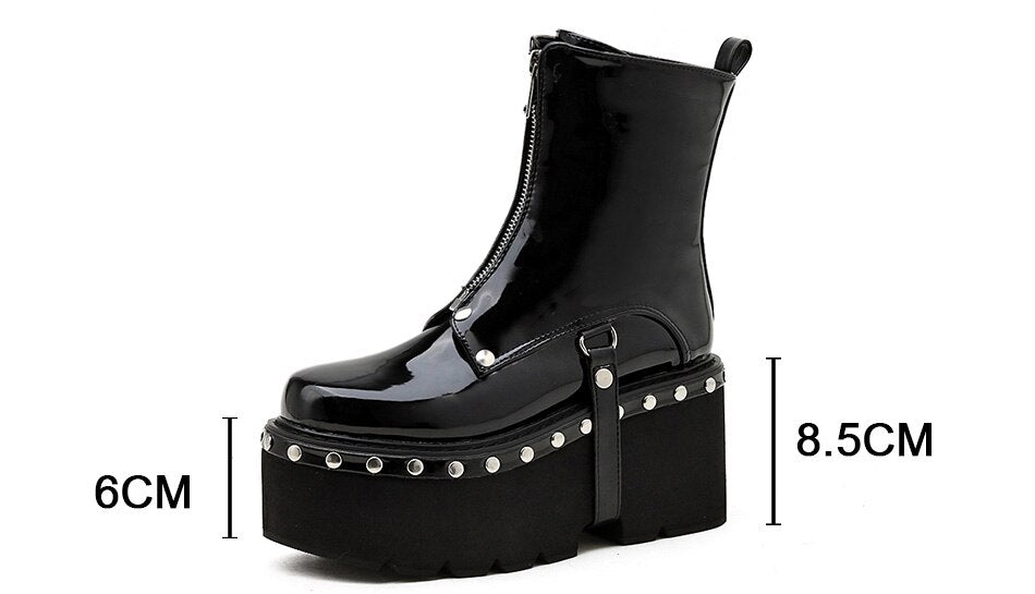 - Material: Lackleder, glattes Polyurethan, Metall, Gummi