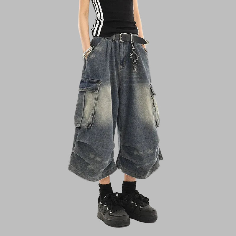 Damen Grunge Cargo Shorts Jeanshose Weit