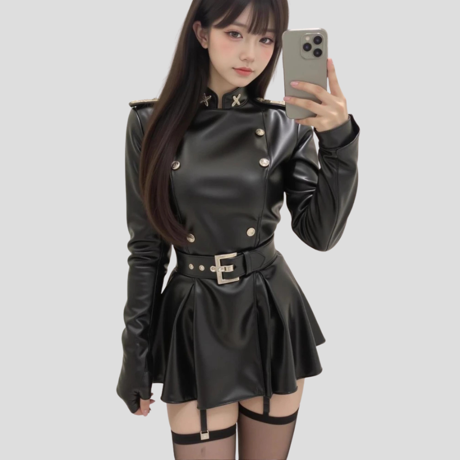 Damen Grunge Kleid aus schwarzem Leder