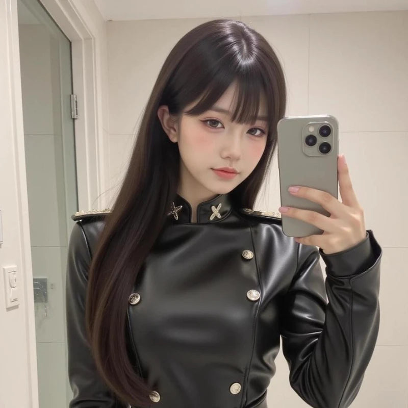 Grunge Lederkleid Schwarz Damen