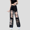 Grunge Punk Weite Zerrissene Damenjeans