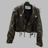 Damen Lederjacke mit Nieten und Ketten Schwarz Punk Goth Metal
