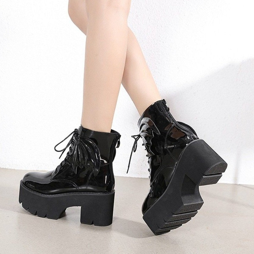 - Material: Lackleder, glattes Polyurethan (Lederimitat), Metall, Gummi