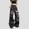 Schwarze Grunge-Jeans Zerfetzte Oversize Damen