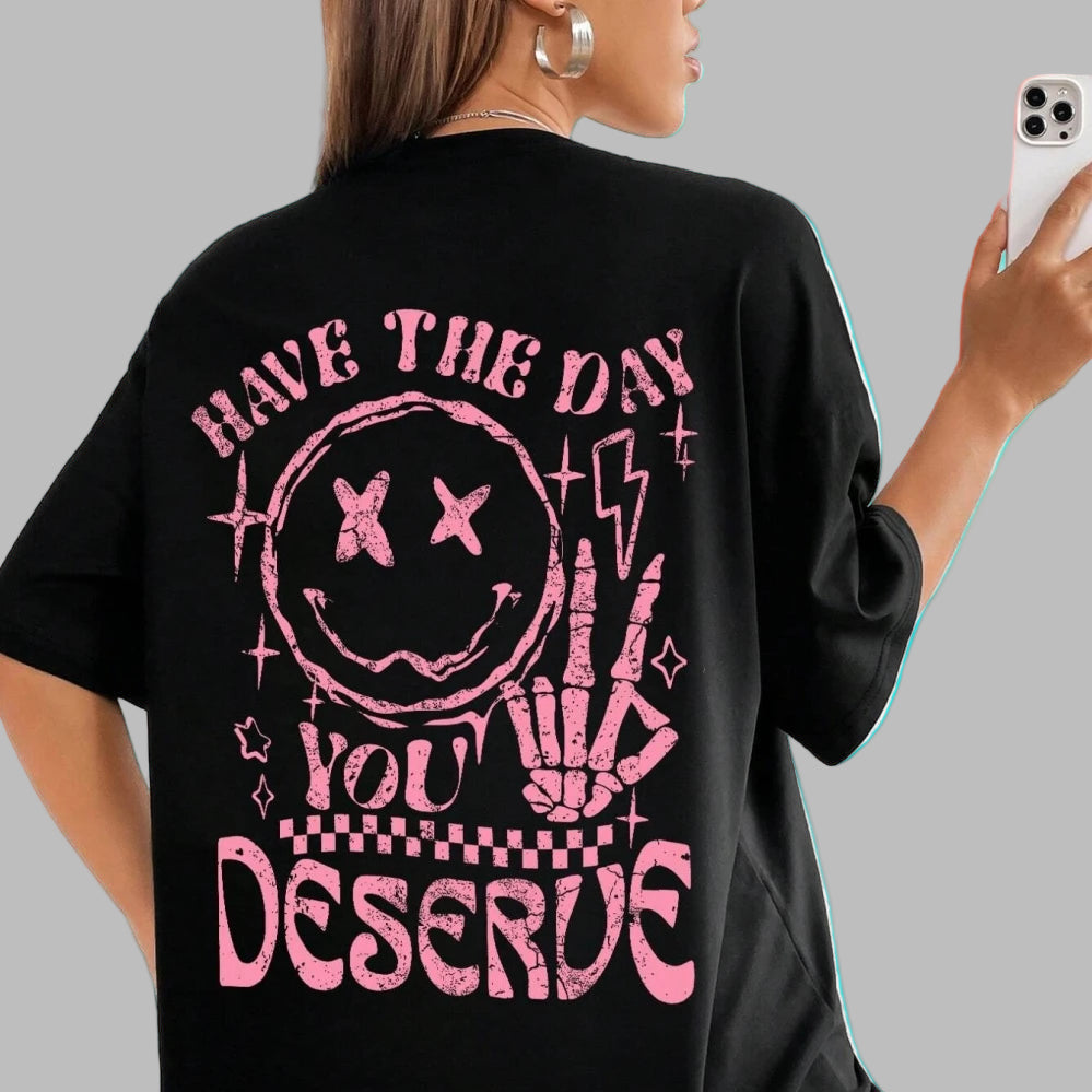 Damen Oversize T-Shirt Grunge Rock mit rosa Smiley-Print