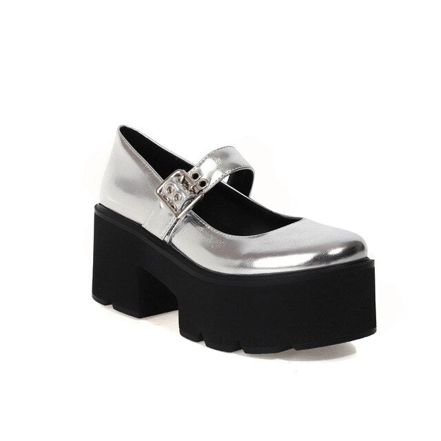 Damen Schwarze Lederschuhe Silber