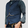 Dunkelblaue Steampunk-Weste mit Taschenuhrkette Fischgrätmuster