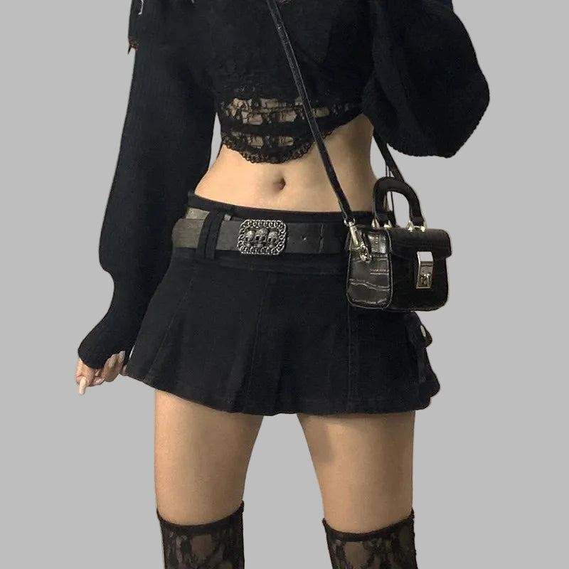Gothic Faltenrock Minirock Punk mit Metallapplikation