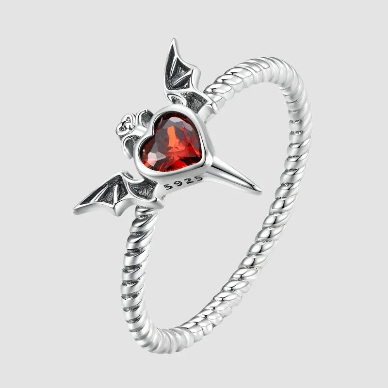 Gothic Ring mit rotem Herz aus 925er Silber Optionen anzeigen