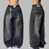 Graue Baggy-Jeans im Grunge-Stil mit Ketten Metal