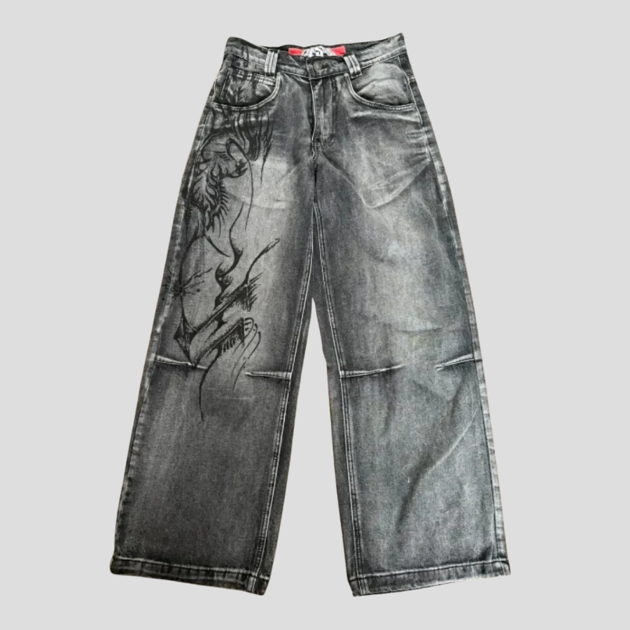 Graue Grunge-Jeans mit Blumenmuster, weit