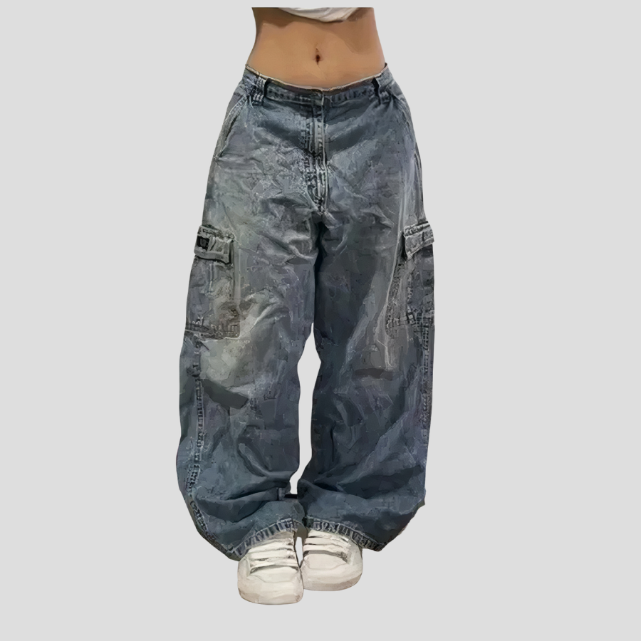 Graue Vintage Grunge Oversize-Hose mit Cargo-Taschen