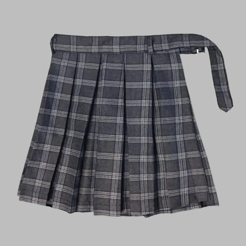 Grauer karierter Faltenrock mit Bindegürtel