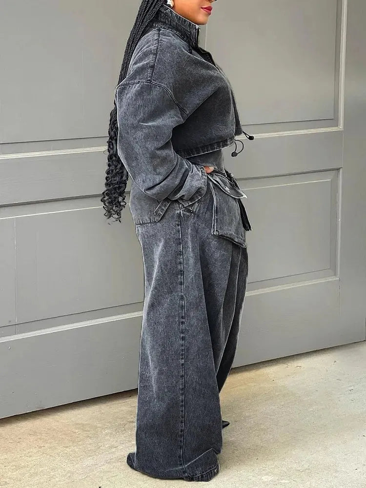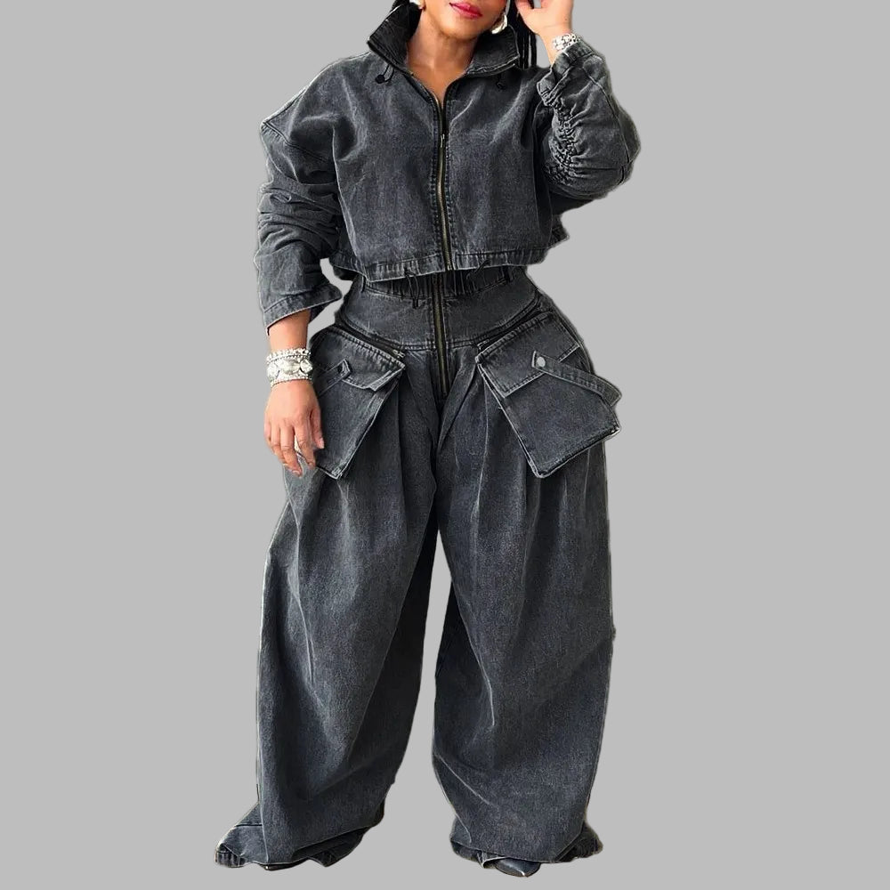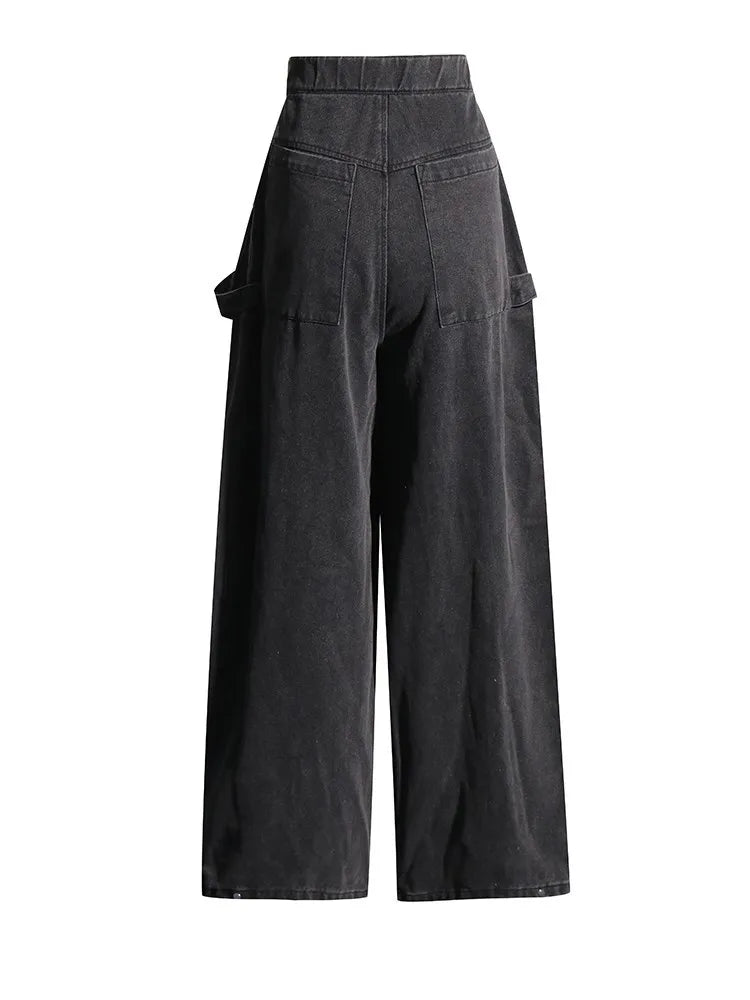 Grauer Punk-Jeans-Overall mit Cargo-Taschen