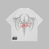 Graues Metal-T-Shirt mit Nieten und Aufschrift "Attention"