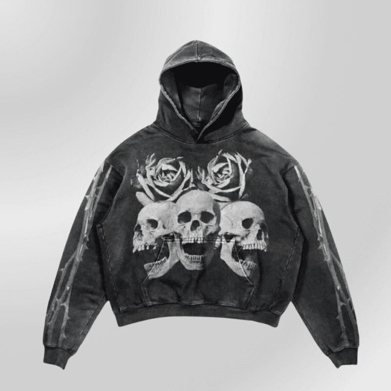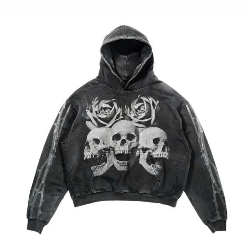 Grunge Kapuzenpullover mit Skelettmotiv - Flower XXL