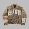 Grunge Rock Metal Jeansjacke mit Leopardenmuster und Schriftzügen
