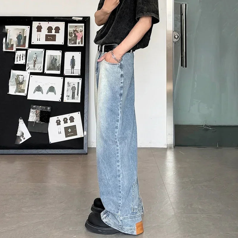 Helle Grunge-Jeans mit Cargo-Taschen und weitem Bein