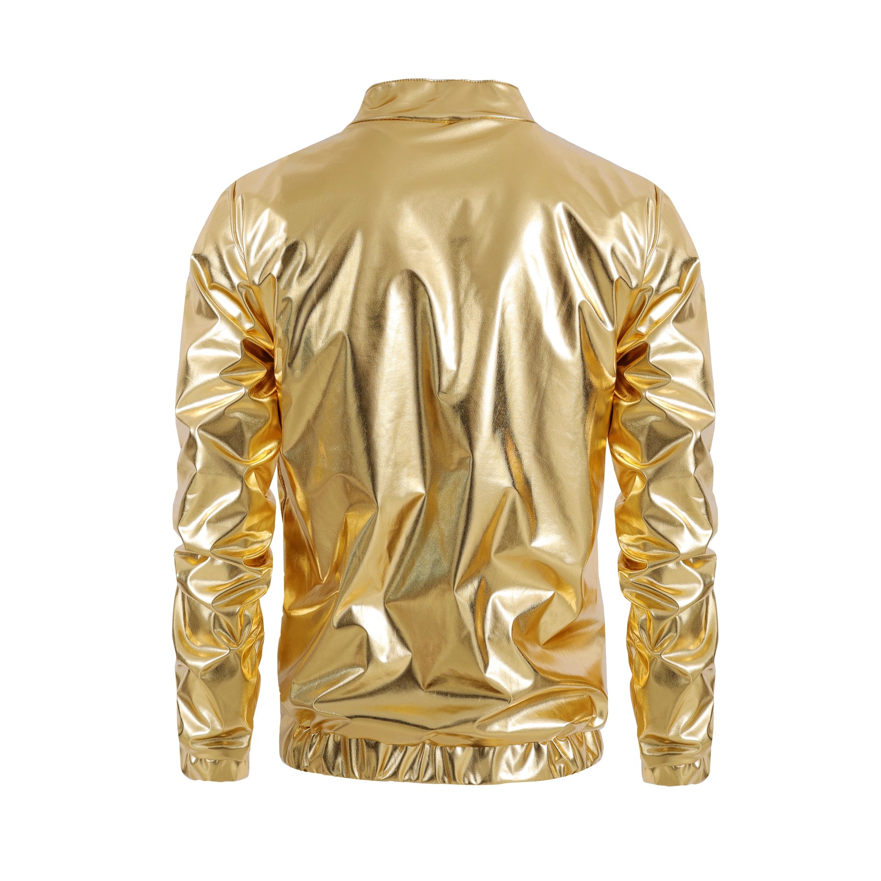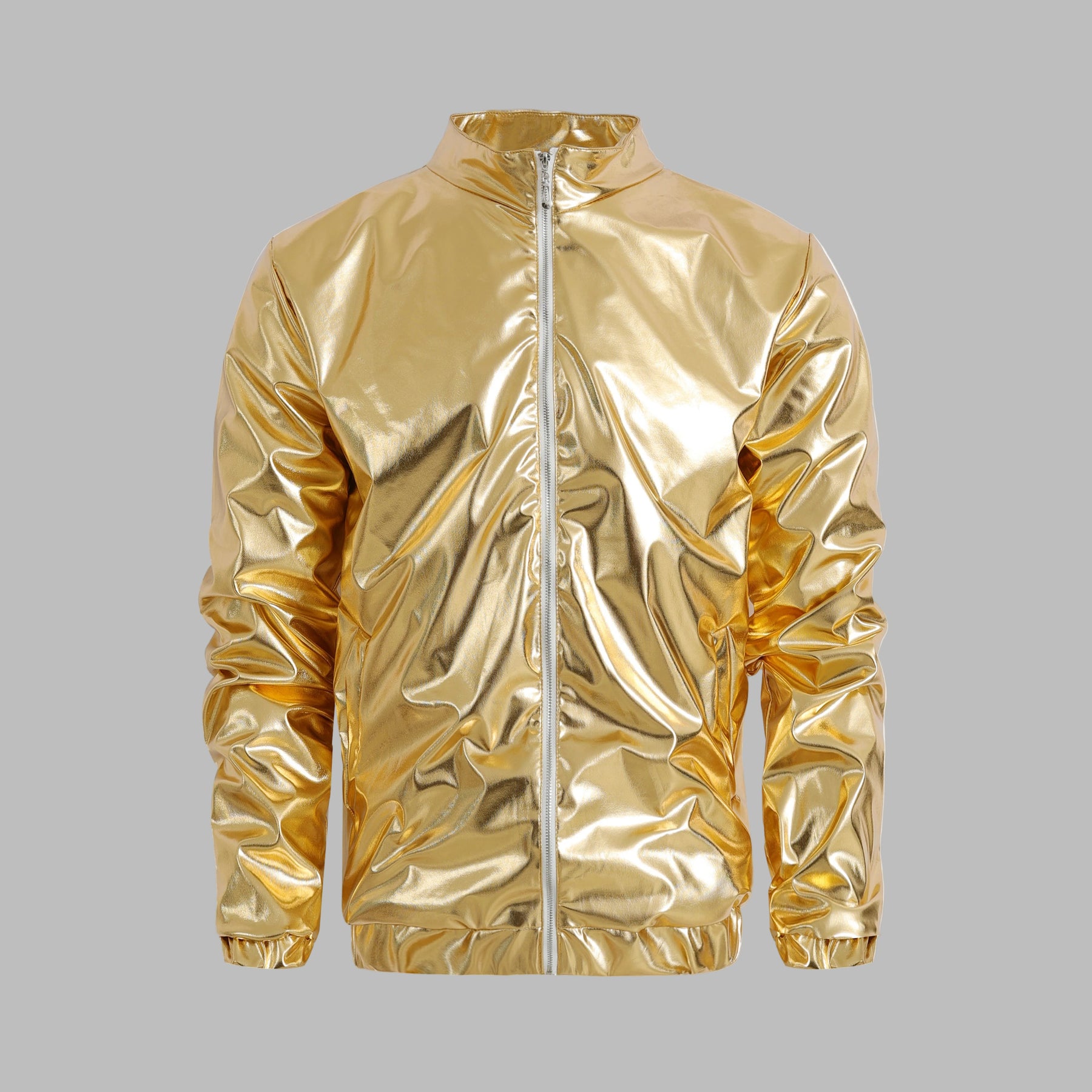 Herren Glänzende Goldene Metallic Bomberjacke Rock Stil