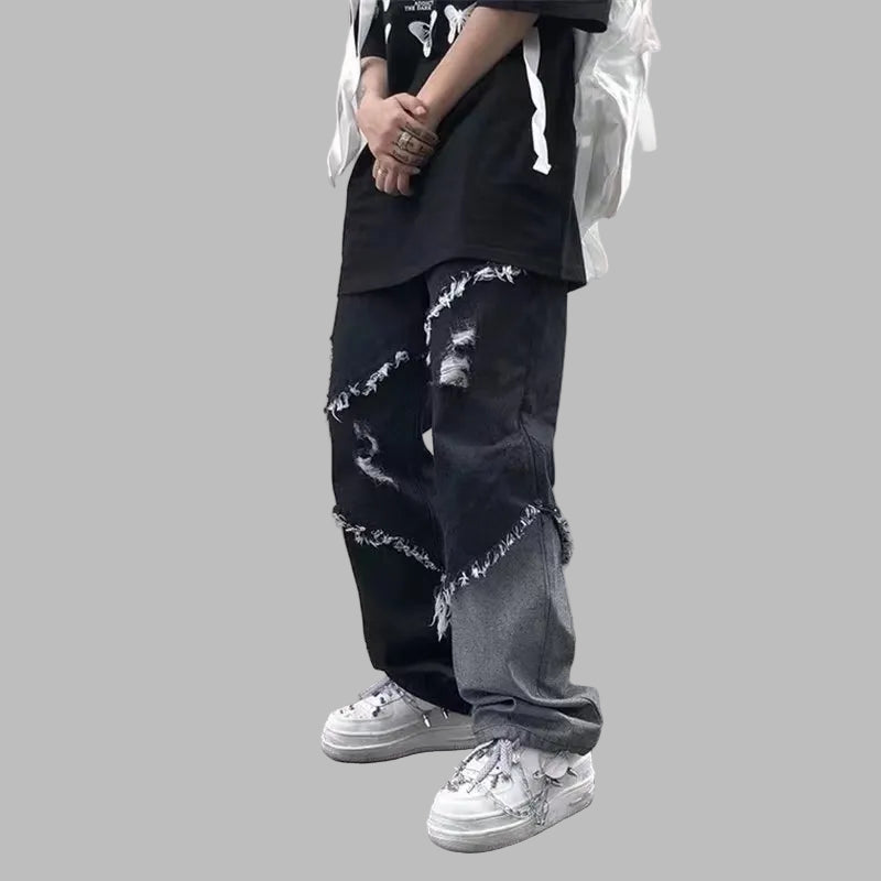 Schwarze Graue Herren Grunge Jeans mit Schmetterlingsdruck und Rissen