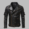 Herren Motorradjacke aus Leder mit Nieten und Riemen im Goth-Punk-Stil, Schwarz