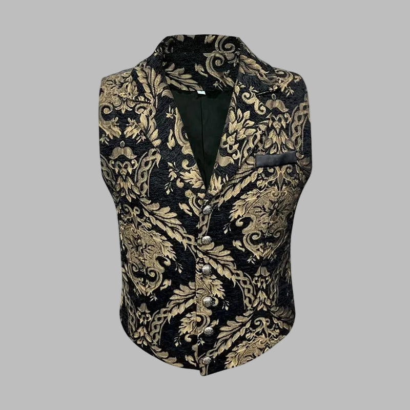 Herren Steampunk Weste mit Barockmuster Schwarz