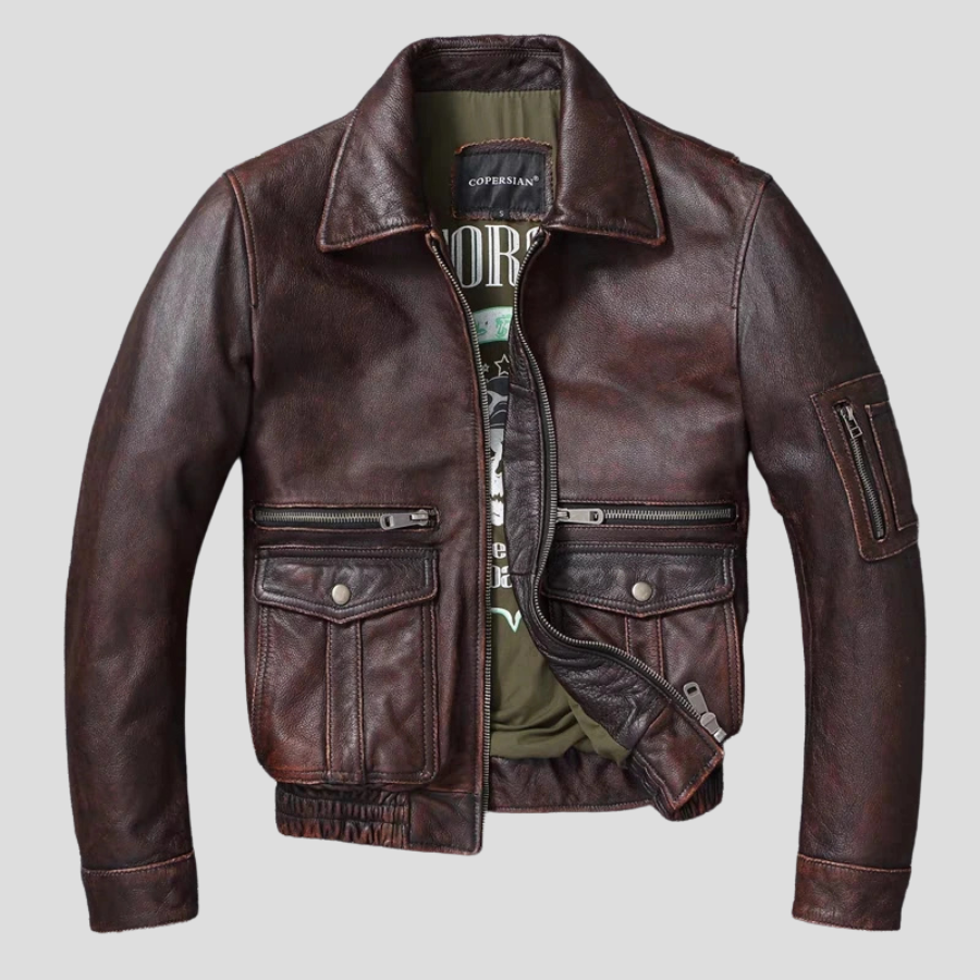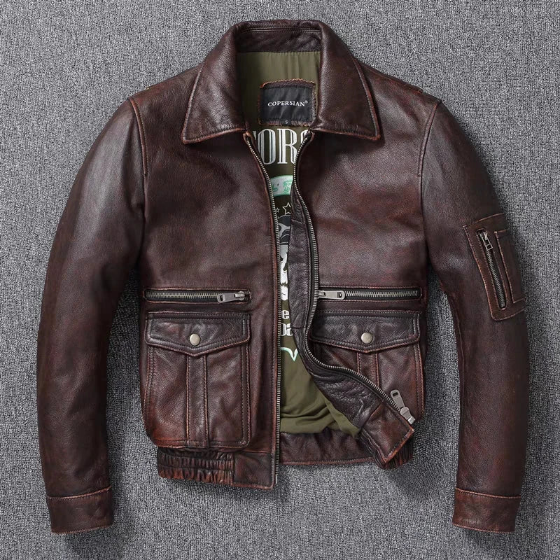 Steampunk Lederjacke Braun Herren Vintage Fliegerjacke