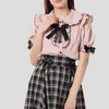 Jirai Kei Bluse mit schwarzer Schleife Rosa Kurzarm