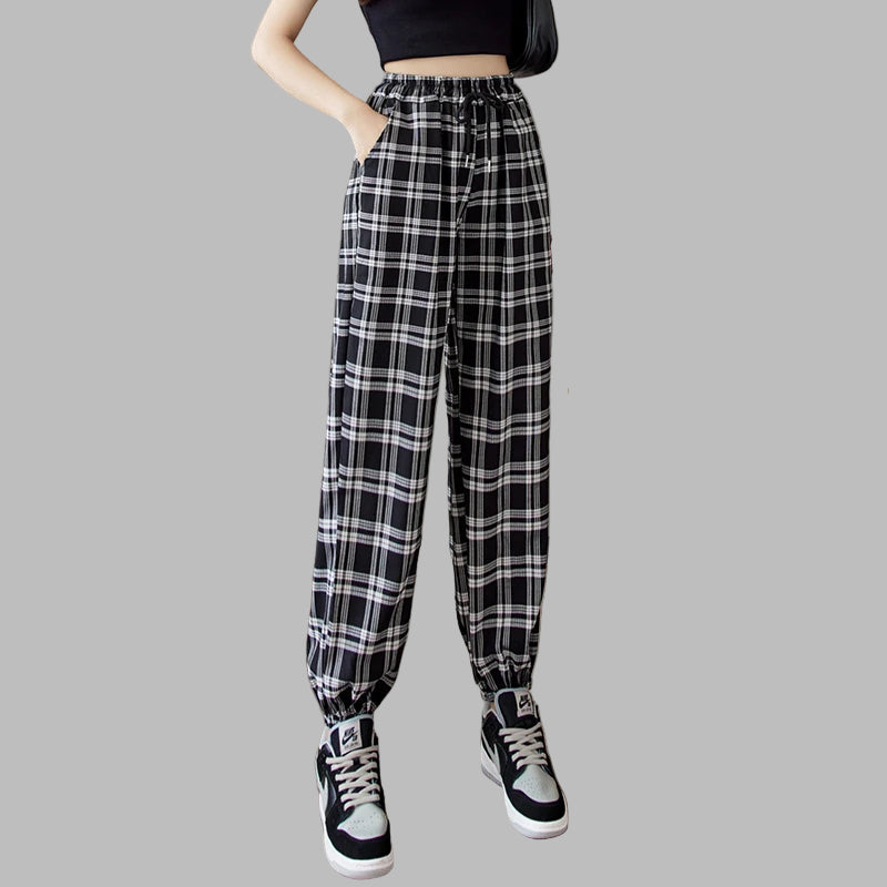 Jirai Kei Jogginghose mit schwarz-weißem Karomuster