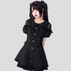 Jirai Kei Kleid mit Herzknöpfen Schwarz mit Rüschen
