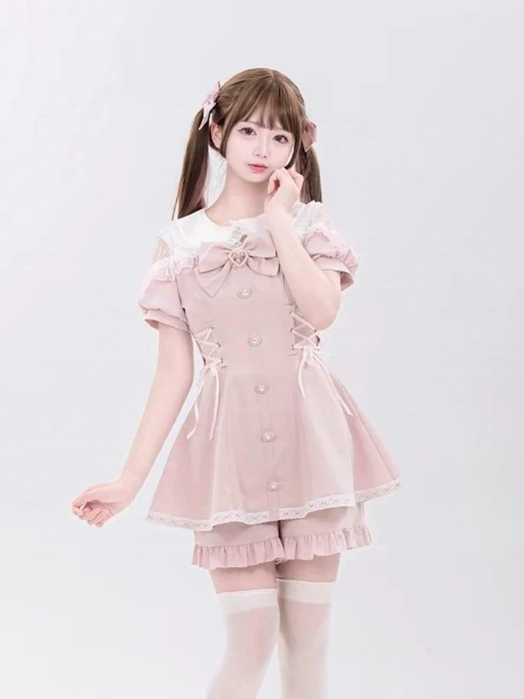 Jirai Kei Kleid mit Schleife Rosa Seitlich Schnürung