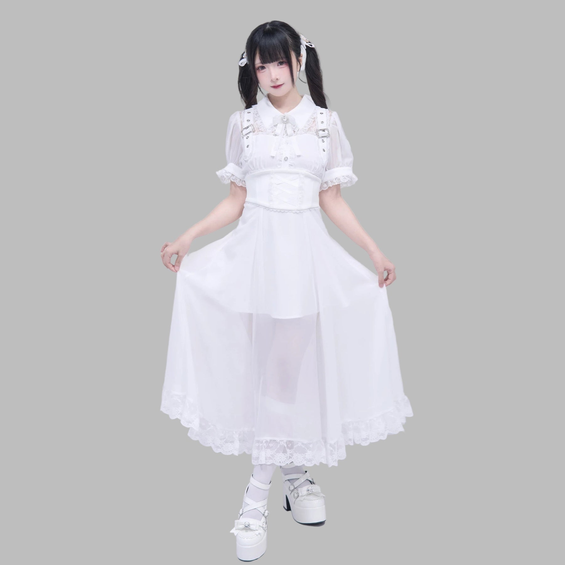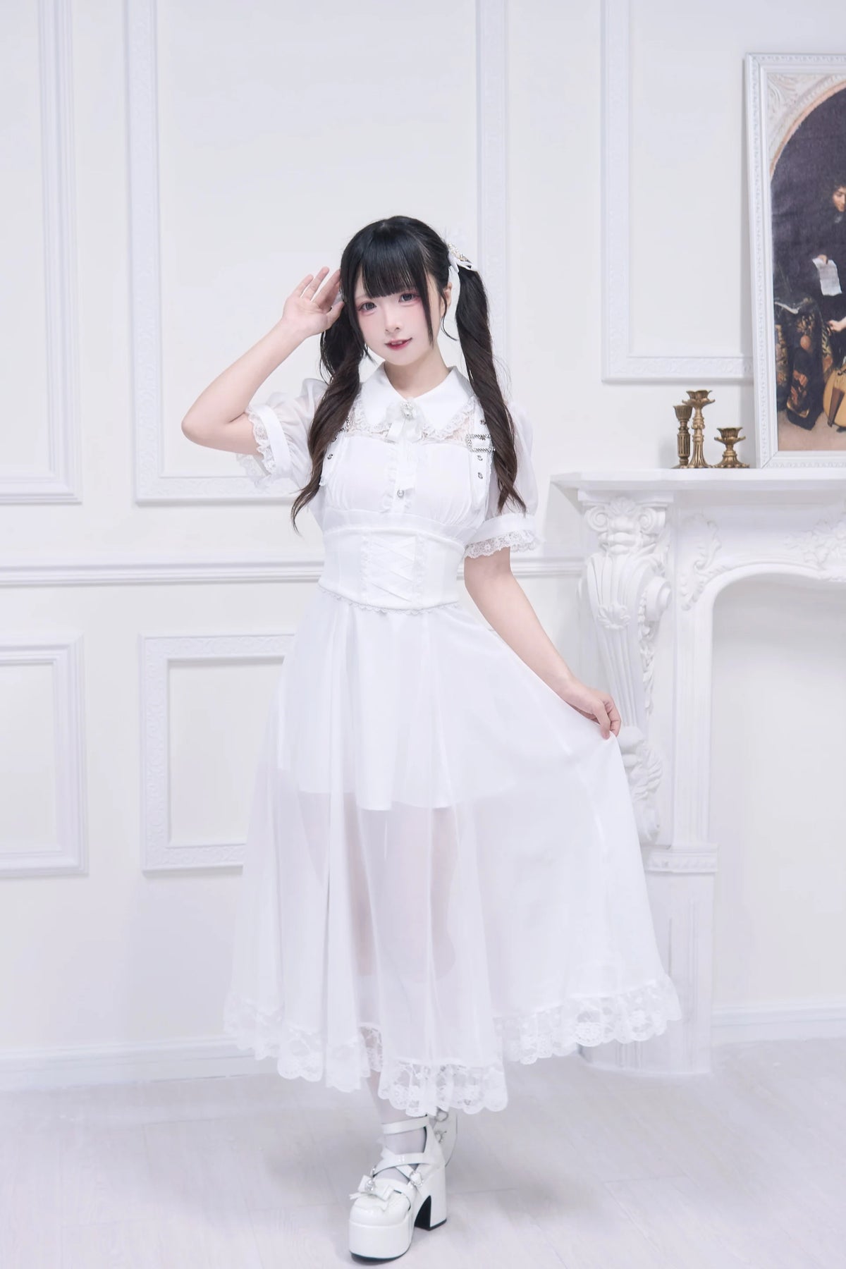 Jirai Kei Weißes Langes Rüschenkleid Kawaii