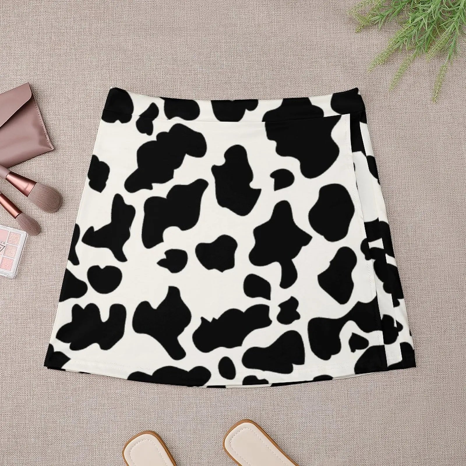 Kurzer Grunge-Rock Minirock mit Kuhflecken Retro-Muster