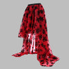 Langer asymmetrischer Rock mit roten und schwarzen Blumen 6XL