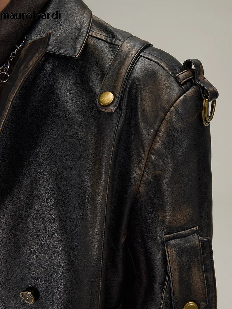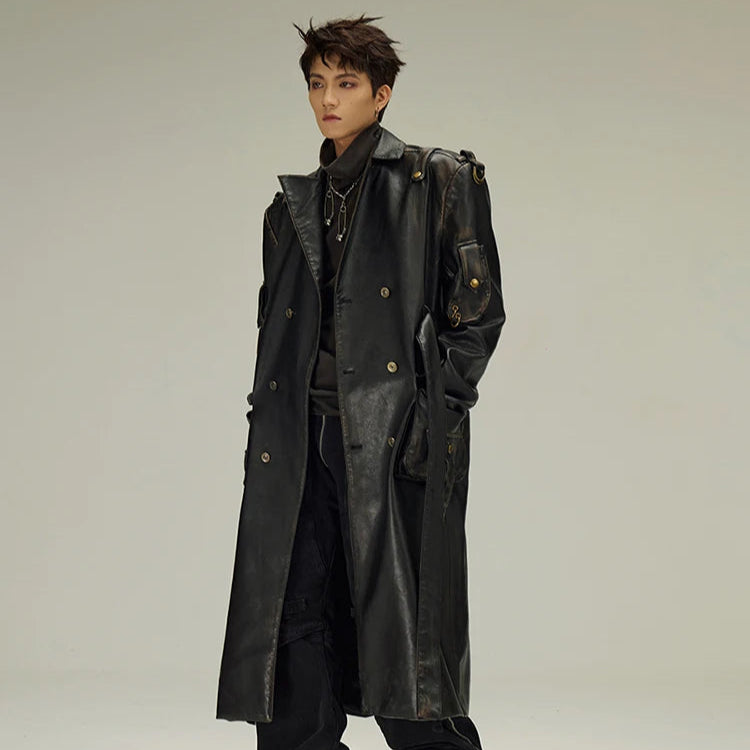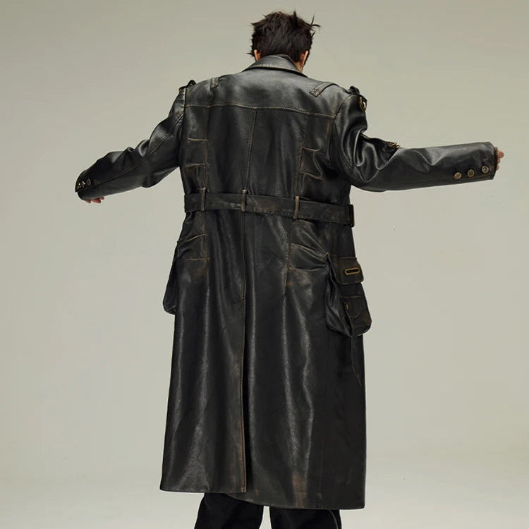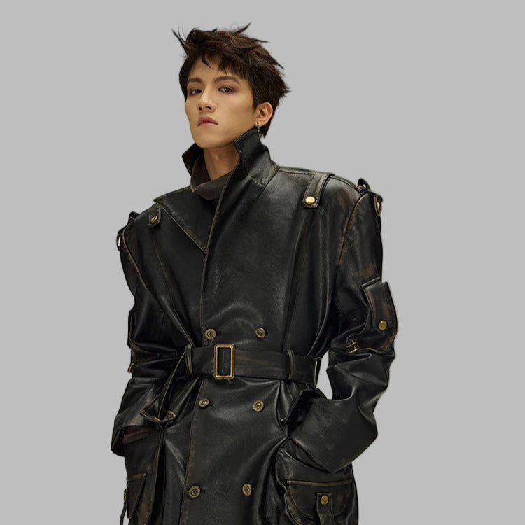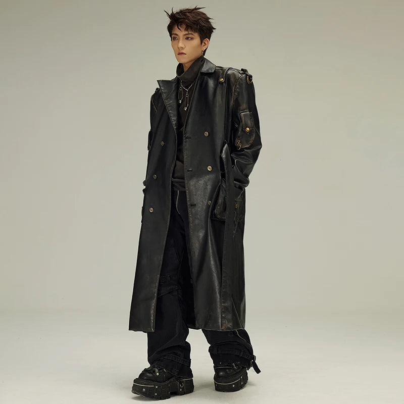 Langer schwarzer Ledermantel im gotischen alternativen Stil