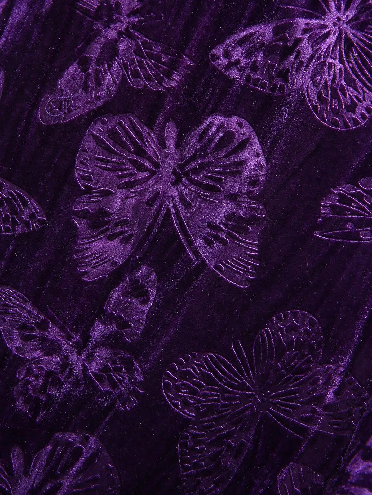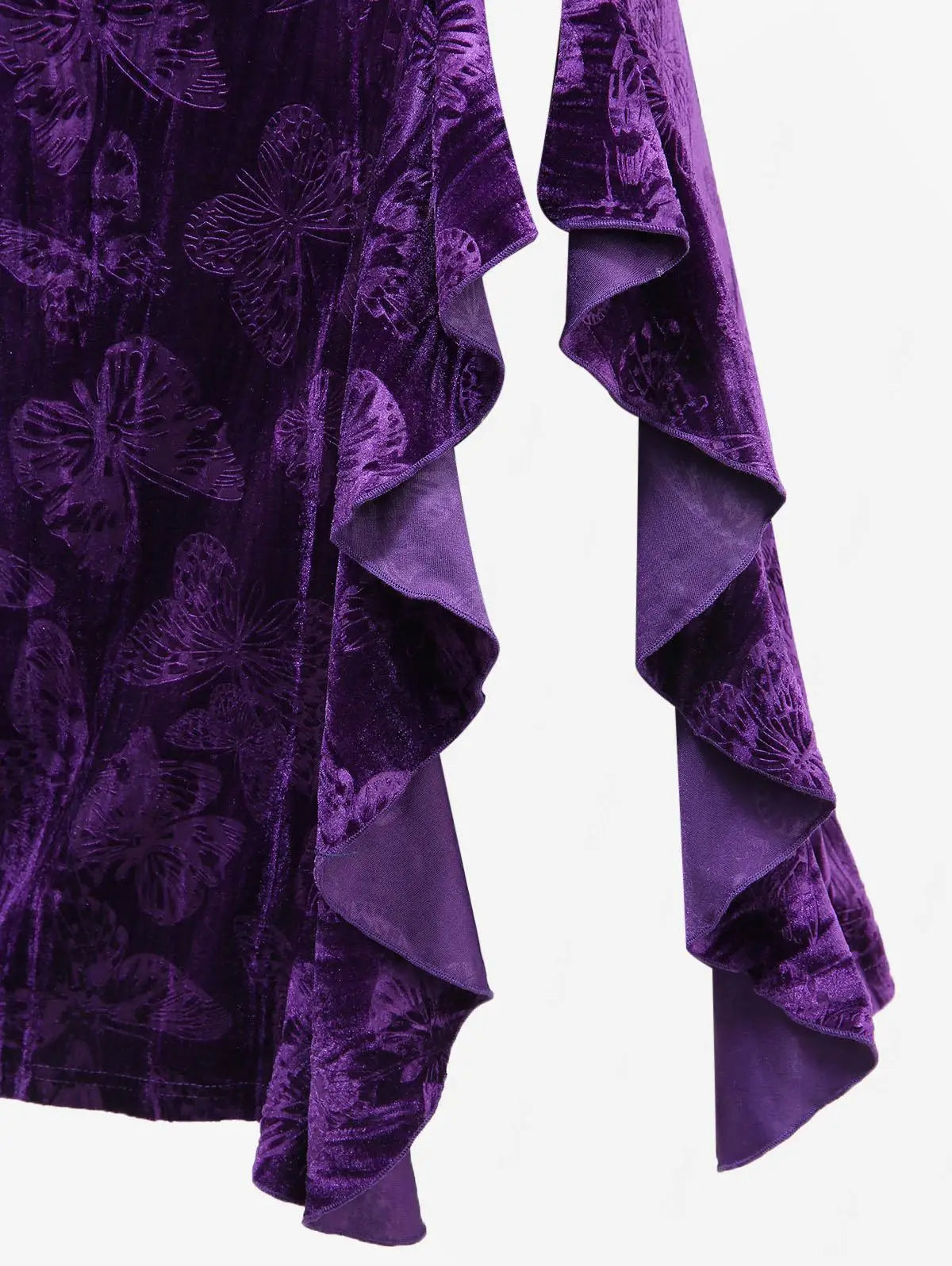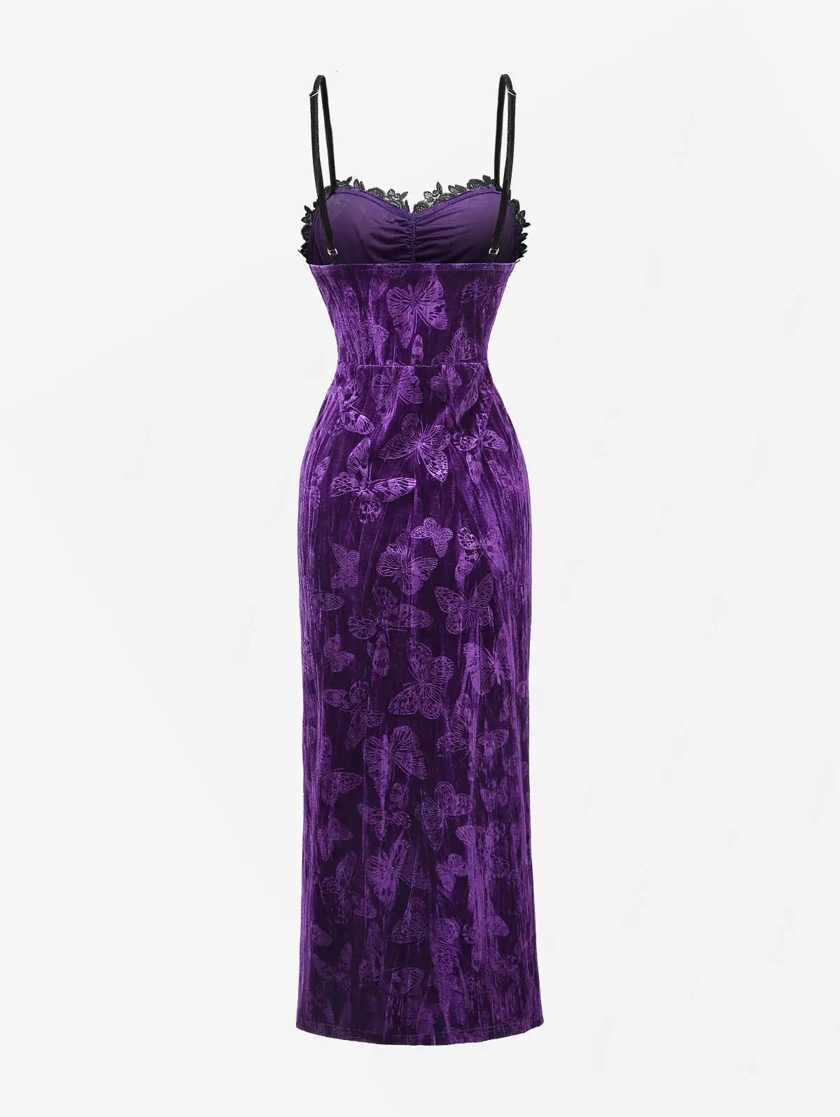 Langes gotisches Kleid aus violettem Samt mit Spitze und Kreuzen