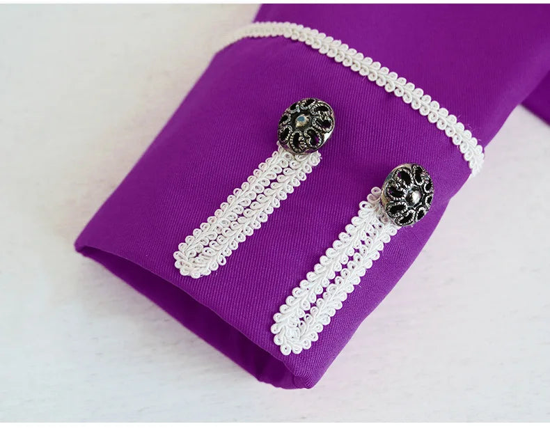 Herren Steampunk-Mantel Lila mit Weißen Zierschnüren 4XL